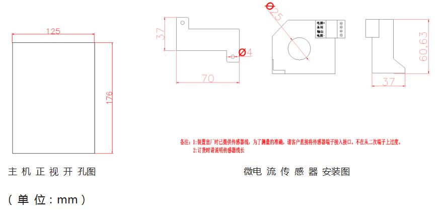 4、訂貨時主機默認配一個微電流互感器。最多配備三個微電流傳感器,訂貨期需說明。